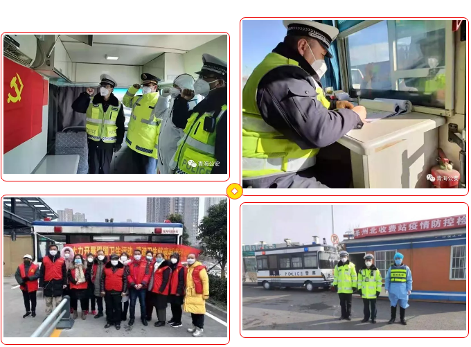 河北磁县、湖北武汉、驻马店平舆、南阳南召、甘肃武威、青海德令哈、甘肃凉州公安交警把疫情防控指挥平台设在了疫情防控的“第一道关卡”,有效提升了队伍的凝聚力、战斗力。