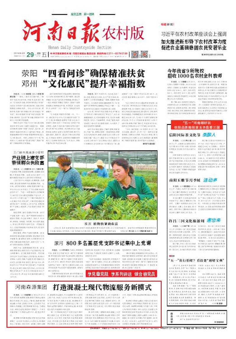 河南日报头版报道——河南易游中国一站式体育服务平台,集团打造混凝土现代物流服务新模式